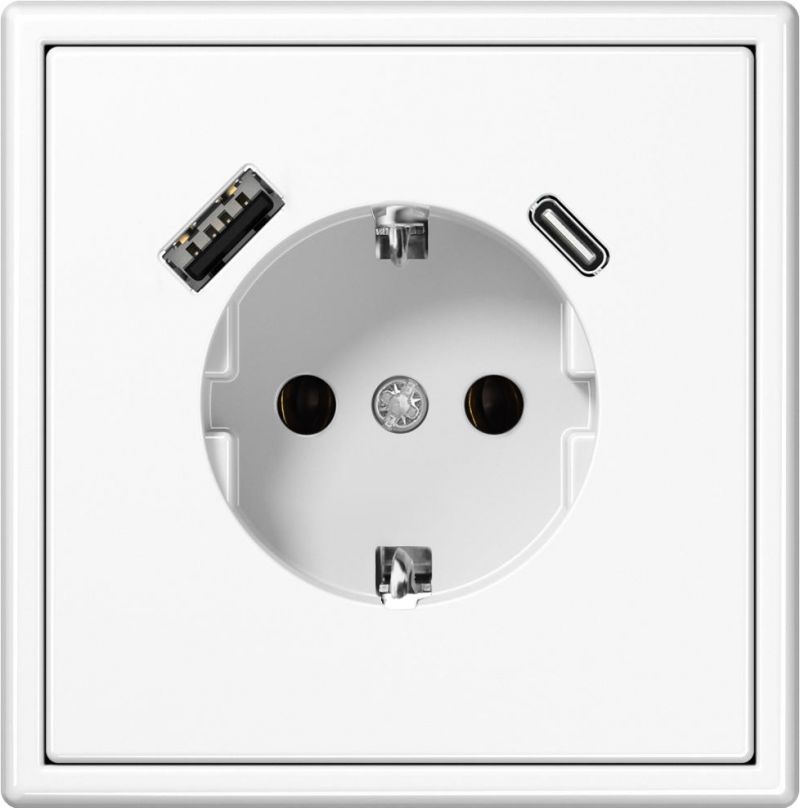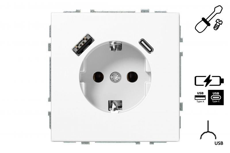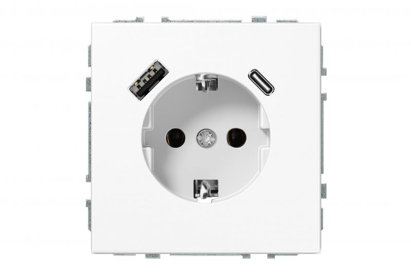 SHUCKO kištukinis lizdas su ižeminimu ir 3.4A max.USB A+C krovikliu, balta.mat.G610.b/r