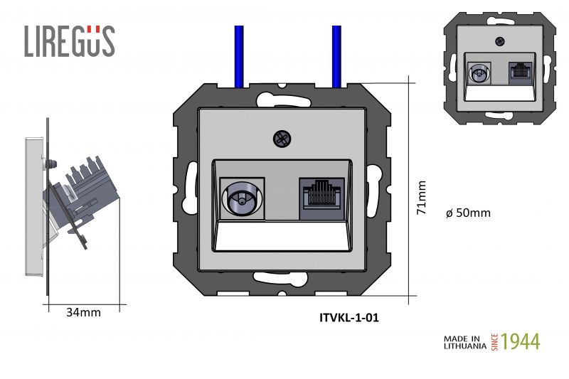 Il.TV ir komp lizdas RJ45 kat.6e."Retro", šviesi matinė sp.b/r