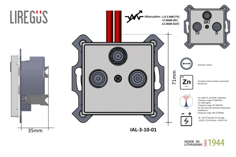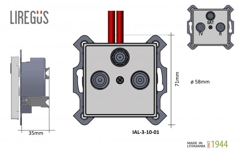 Il.TV+R+SAT antenų lizdas,tarpinis -10dB."Retro", šviesi matinė sp.b/r