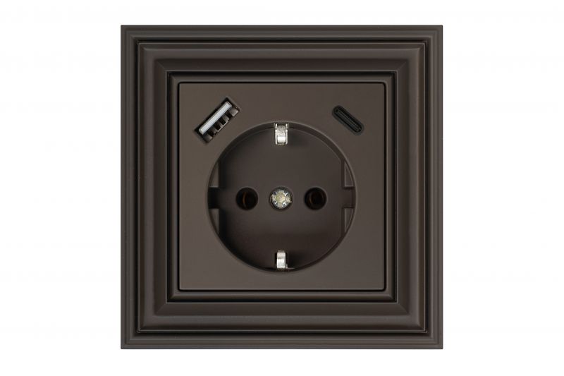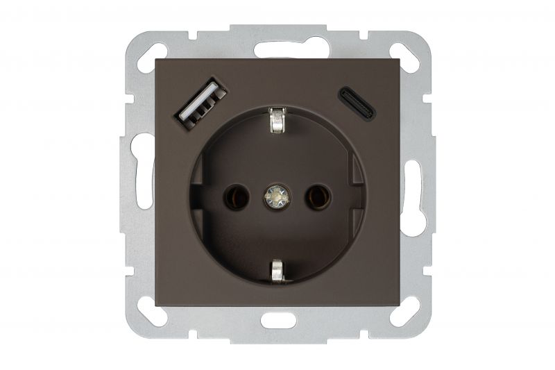 IUK-3-01.R.ON3116A. 250V~ SCHUKO® kištukinis lizdas su naujausio tipo, išmaniu 25W, 3,4A USB A+C krovikliu. Gaminys parduodamas be rėmelio.