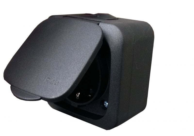 Paviršinis kištukinis lizdas, su dangteliu, 1-vietis, hermetinis